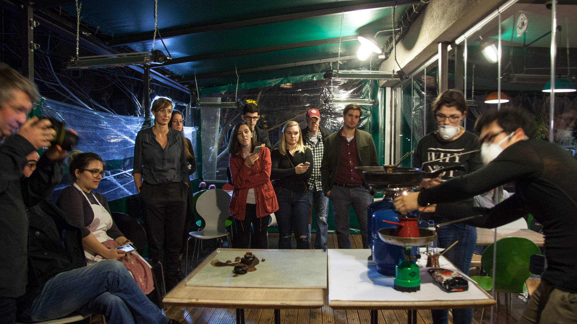 Soufflée au KEK depicts the absurdity of the situation in a data dish and a performance.